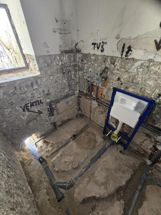 kupatilo prva faza instalacija u staroj kamenoj kući. Ugradnja dovoda i odvoda i geberit vofokotlića.